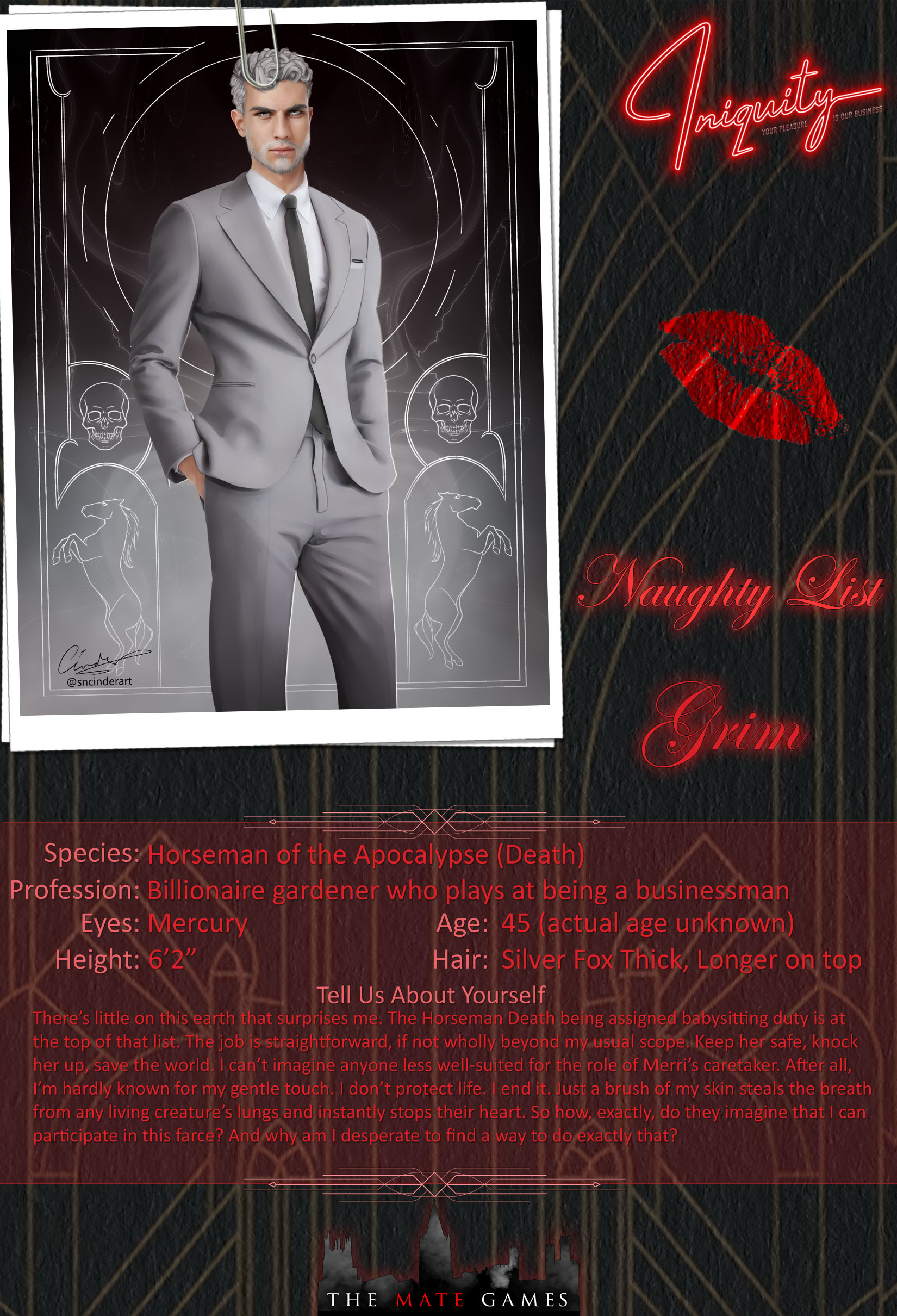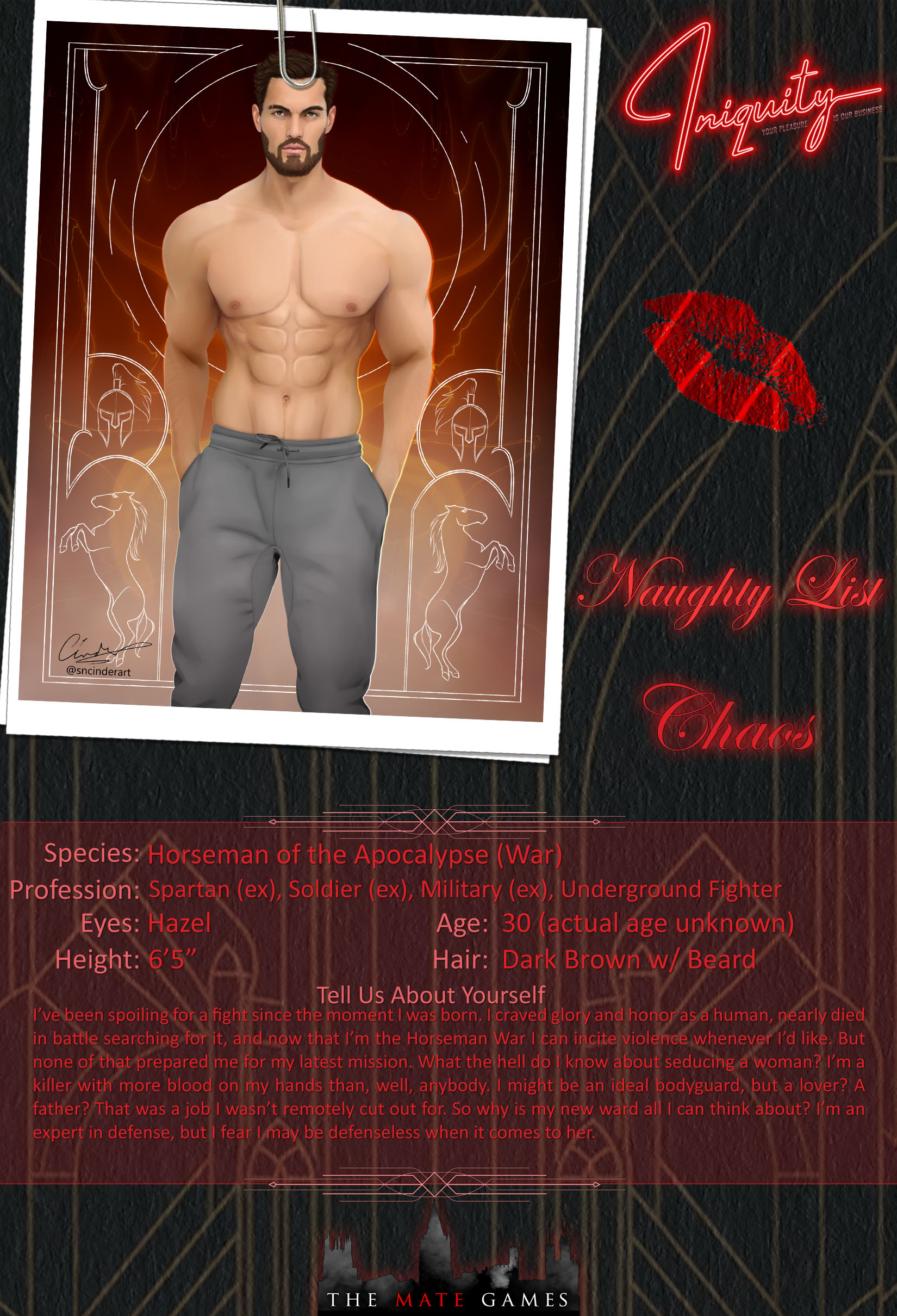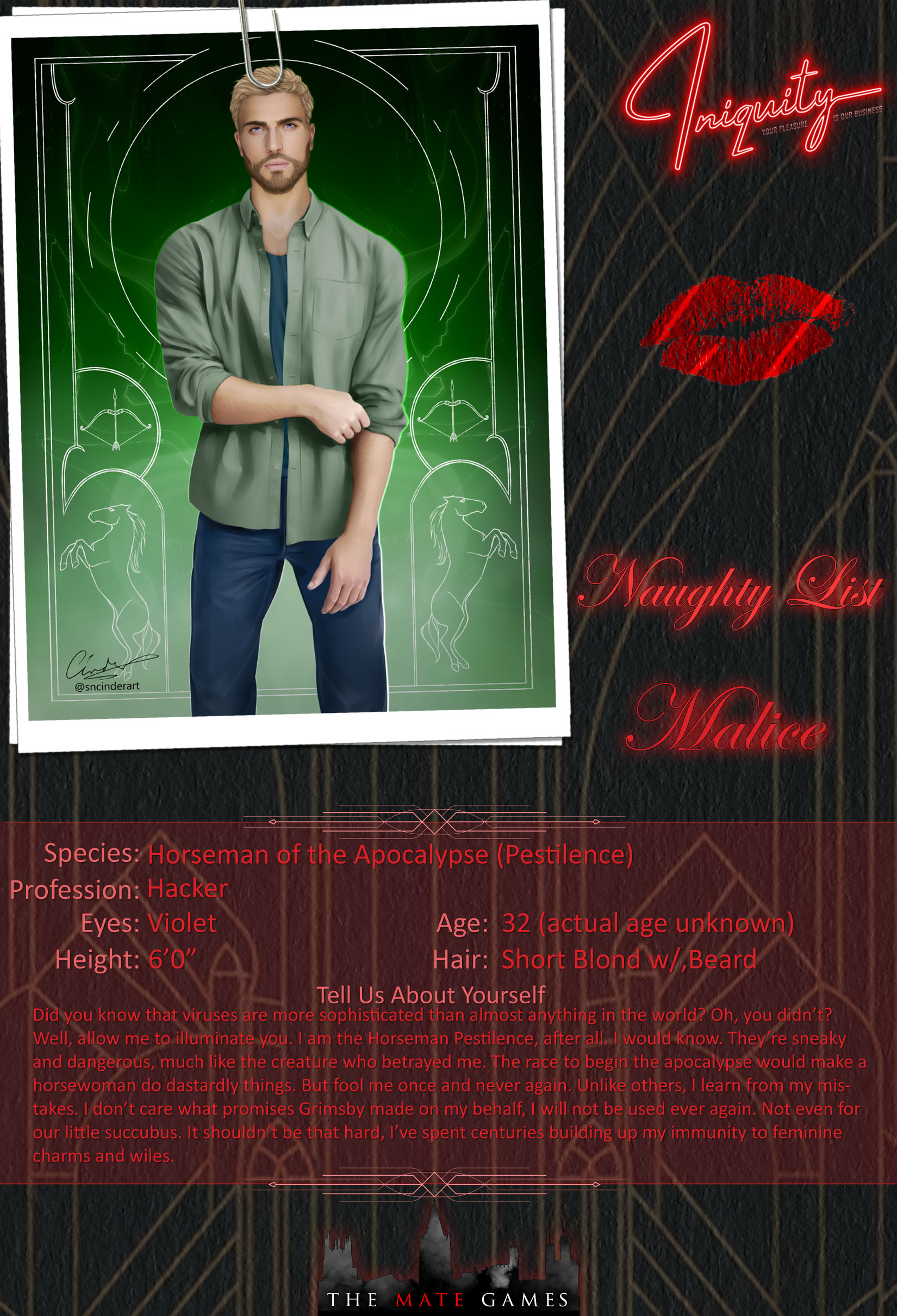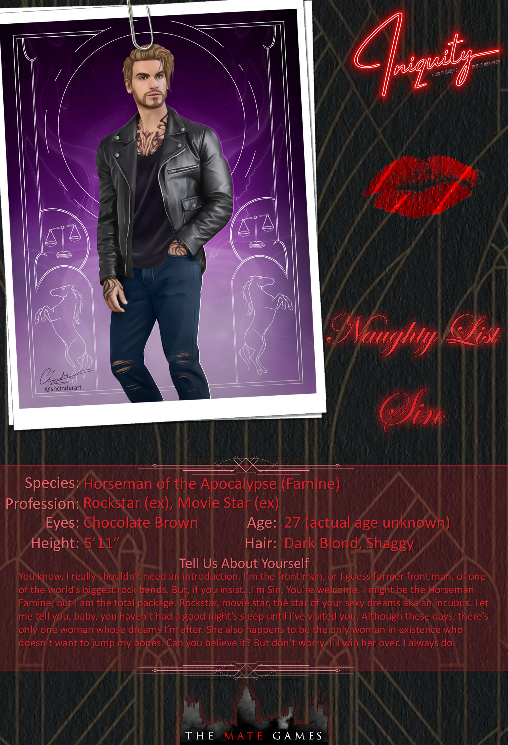 Warning: The Mate Games: Apocalypse is a spicy paranormal series featuring morally gray heroes whose methods of protection aren’t always above board. Not that you can expect much honor from a celibate recluse, an incubus rockstar, the original shadow daddy, and a grumpy ex-Spartan. They are the Four Horsemen of the Apocalypse, after all.